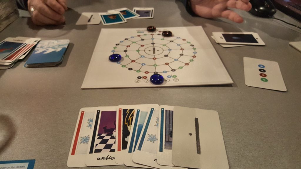 I found this game to be rather challenging and fun. I’ve only lost one game which seems odd to say challenging but I don’t find myself playing this game with people I don’t connect with which brings me to my point. This game lives or dies with the players sitting in front of it. Each player must pay close attention to not only the cards in front of them but also the cards in front of the other player and their position. It isn’t difficult to close down the other player’s ability to move if you are not paying attention. The emotion cards are a finite resource and some players can be rather frivolous with them. I tend to only invite the players that I trust enough with a game like this one.