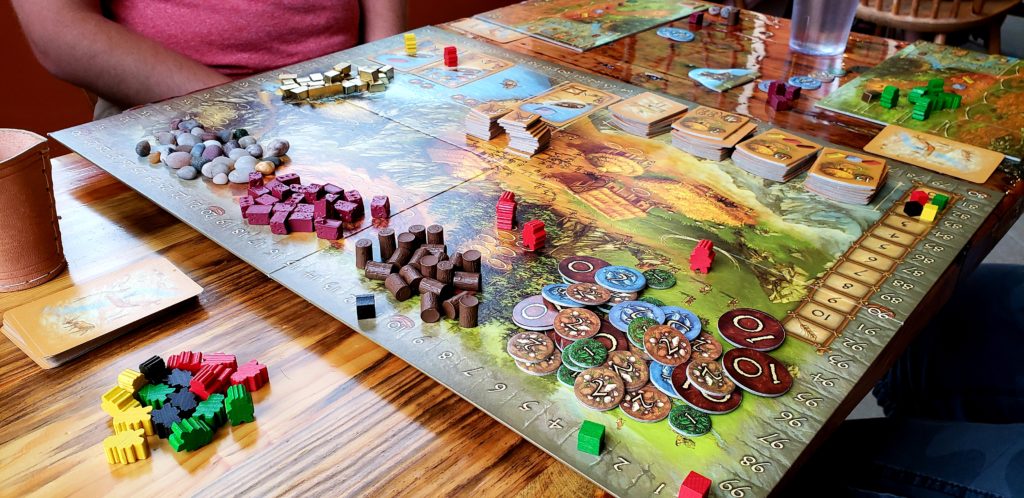 I find that my game tends to fall off as the game develops and I fall short in 2nd or 3rd place. There is almost always a dominate player that adopts a strategy that I didn’t see while playing which brings me to my point. Every player at the table needs to be accounted for as they make there moves. What are they doing with their workers and what cards are they picking up. The end game points can really sneak up and bite you if you let it get away from you.