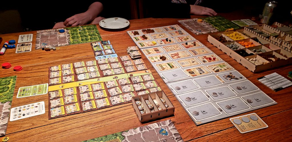 Rome needs a connection to Brundisium, and the players have been tasked with building the Via Appia in order to allow for fast travel between the two cities. To create the road, they’ll need to break off stone tiles in the quarry, then travel to Brundisium, laying out the tiles and creating the path that all will follow in the years ahead. This travel costs sesterces, but will bring crucial victory points and glory from Rome in return.